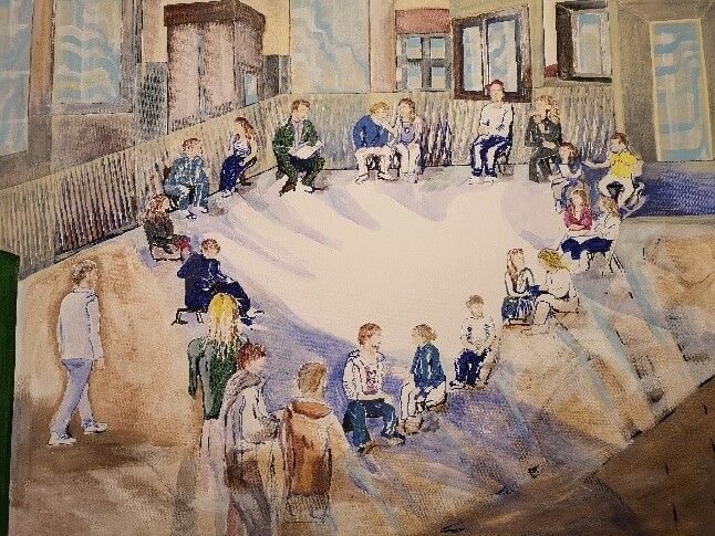 Die zahlreichen Bilder der Ausstellung beschäftigen sich mit dem Thema suchtkranke Kinder und dem Umgang damit und sind aus der Elternperspektive gemalt worden. Bei der Ausstellungseröffnung stellt die Vertreterin vom „Elternkreis suchtkranker Töchter und Söhne“ ihre gemalten Werke mit den jeweiligen Hintergründen und Geschichten vor. Durch das Malen von Bildern konnte sie einen Weg finden, sich mit dem Thema Sucht in der Familie auseinanderzusetzen und es zu verarbeiten.